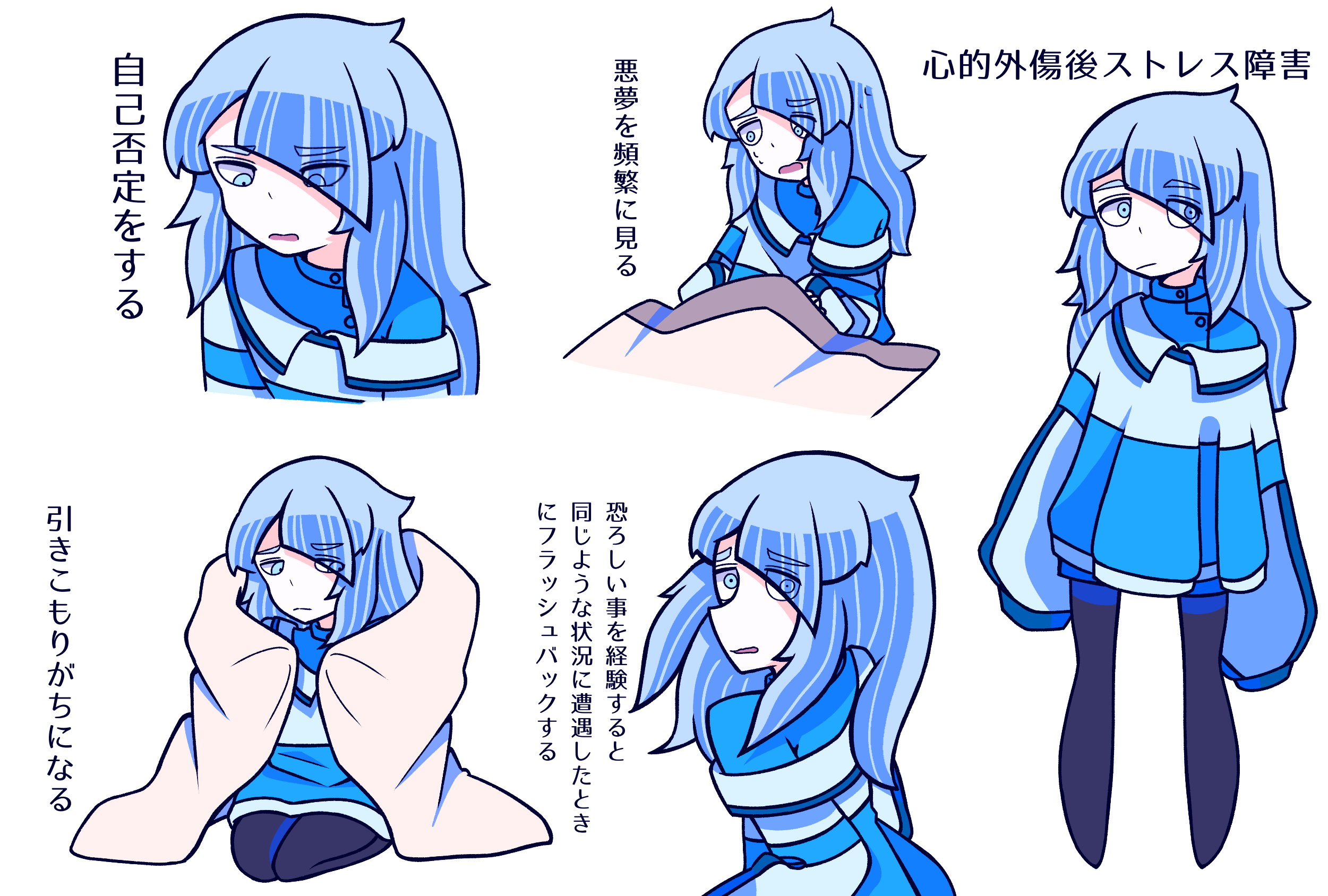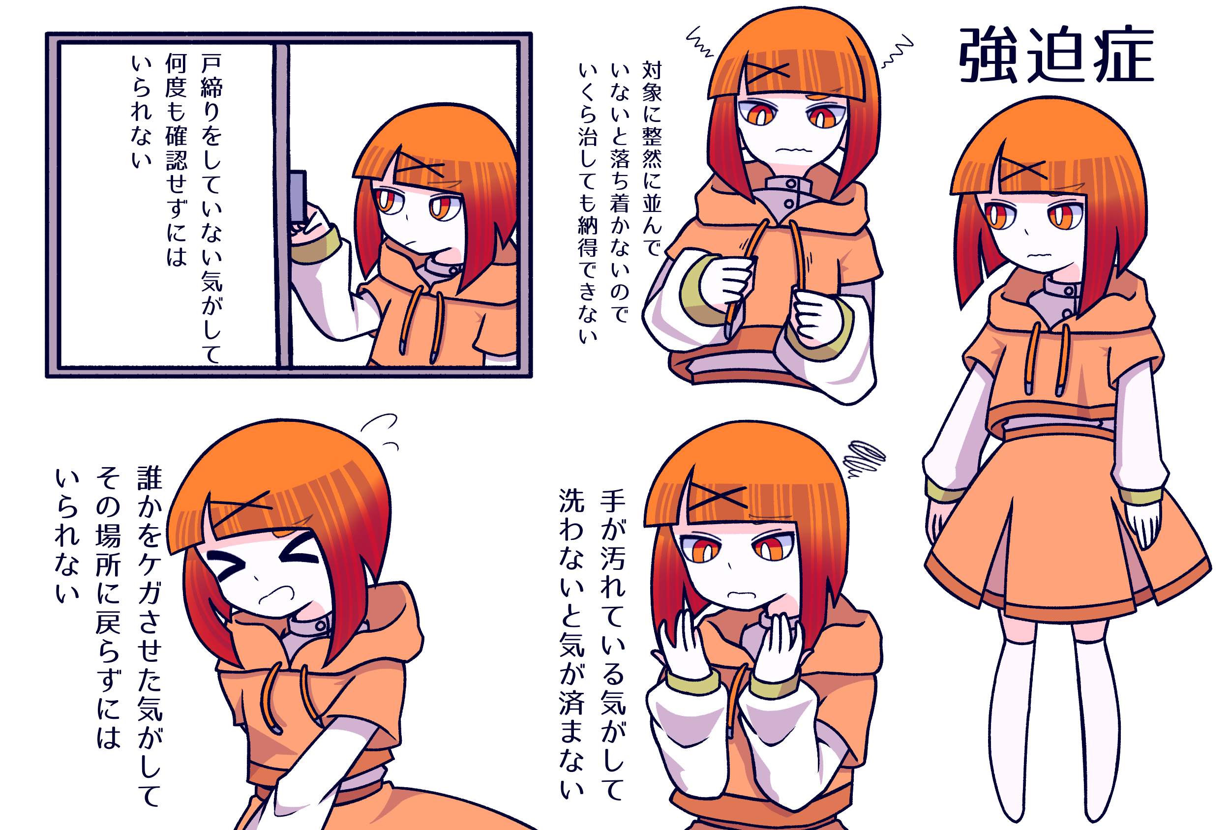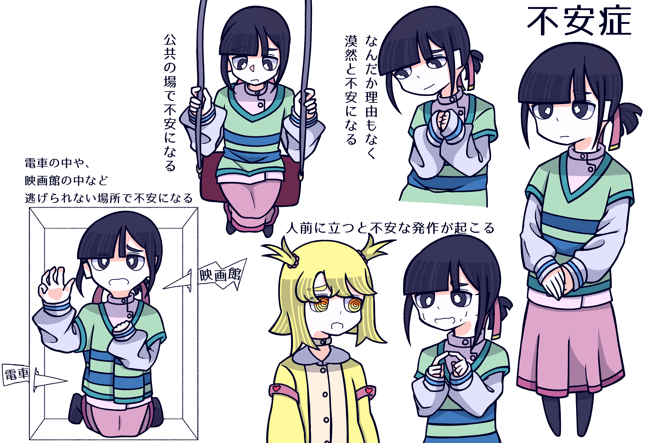 当院ホームページのイメージ画像を作成して下さった、『Aokuzira』先生に作成していただきました。精神疾患の説明イラストです。 クリックすると拡大画像を見れます。